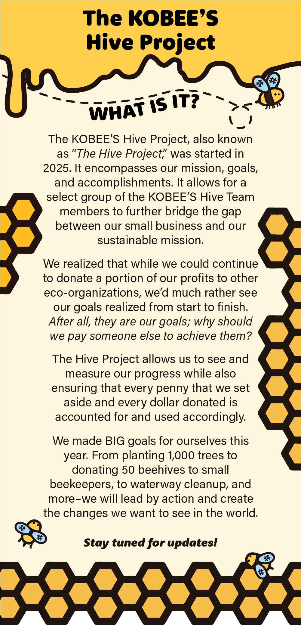 At KOBEEāS, we believe in transparency and direct action. Unlike many organizations that send donations to third parties, we take a hands-on approach, ensuring that every dollar goes directly toward meaningful change. Our team personally oversees the installation of bee hives across America, the planting of trees to restore natural habitats, and the removal of plastic waste from our oceans. We will provide regular updates, including photos, videos, and reports, so our supporters can see exactly where their contributions are making an impact. Every hive placed, every tree planted, and every cleanup effort is documented, allowing donors to witness the transformation they help create. With the KOBEEāS Hive Project, your generosity doesnāt disappear into a fundāit turns into real, measurable environmental progress that you can see and be proud of. Together, we are building a greener, cleaner, and more sustainable future.