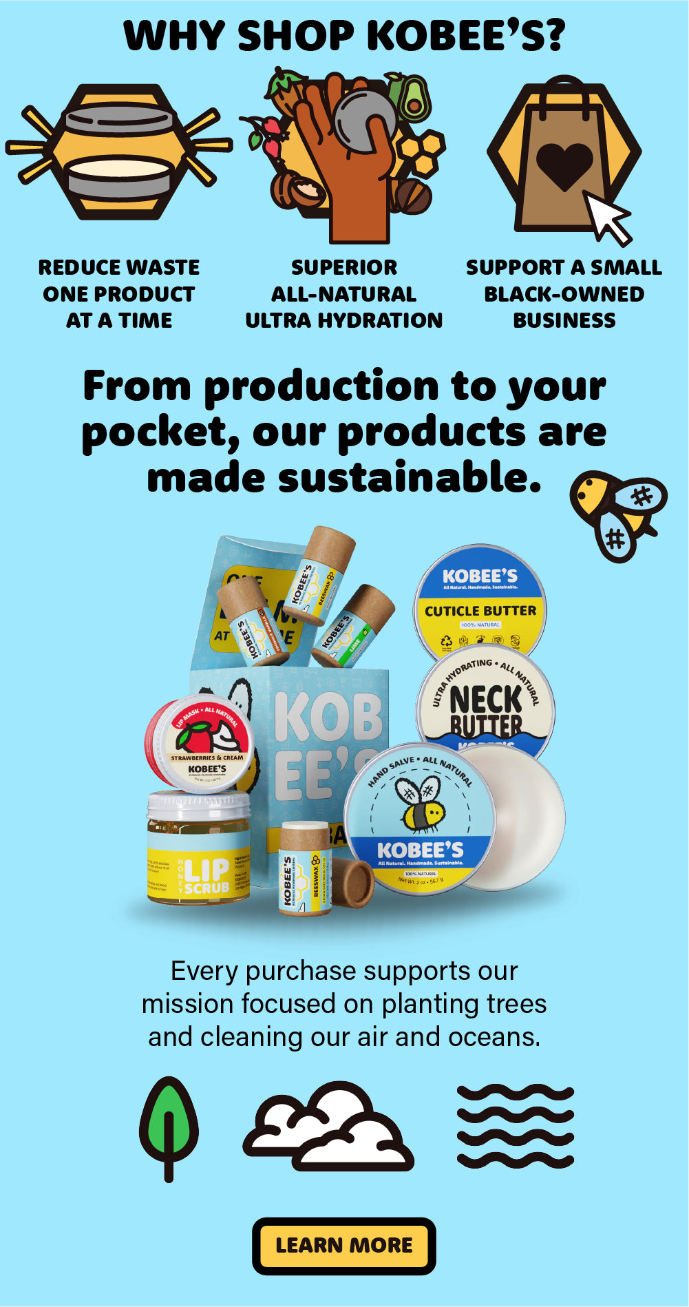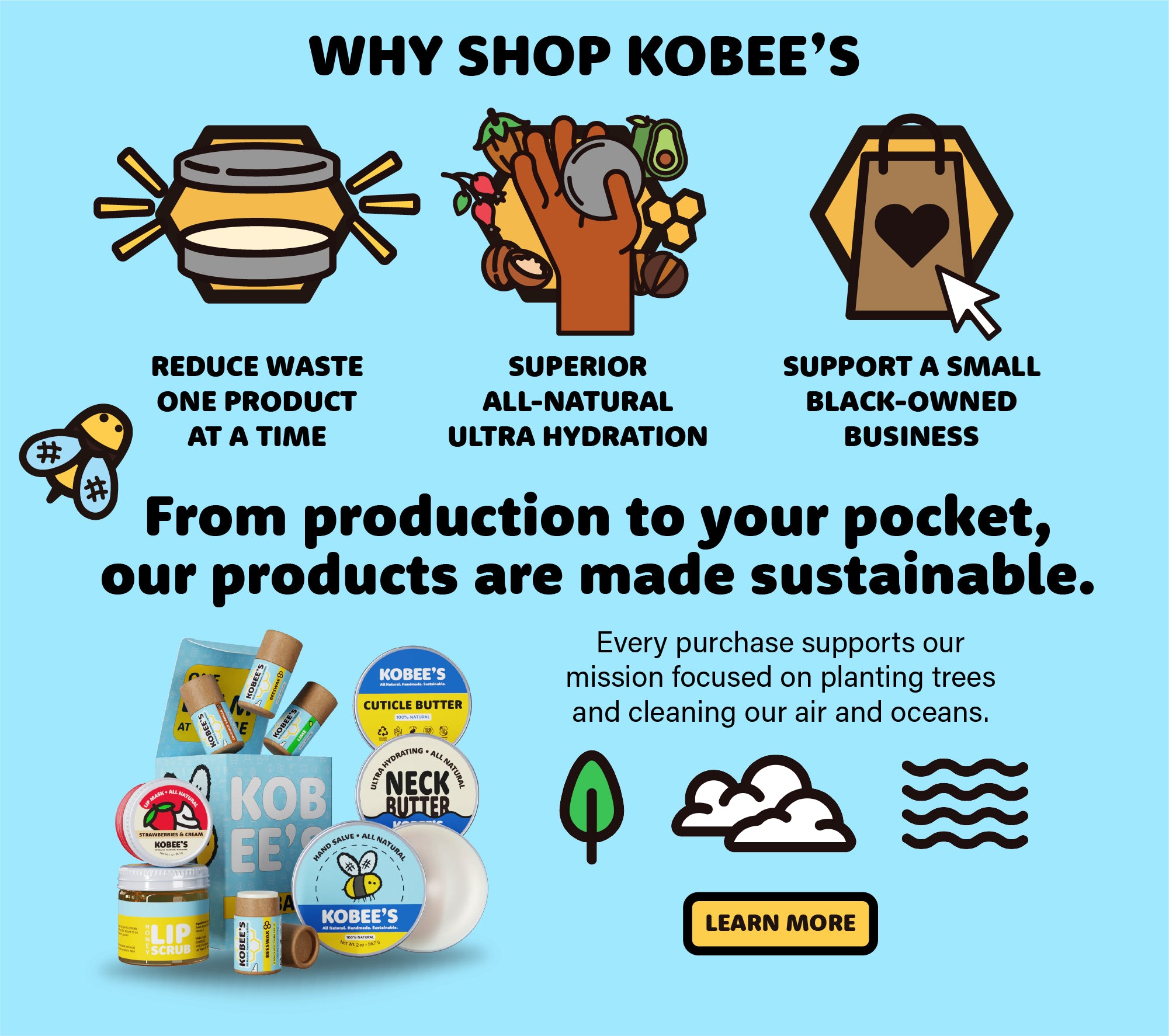 Harness the power of nature for your skin. Nourish, hydrate, and protect your skin with KOBEE'S Hand Salve. With just four simple yet powerful ingredients—beeswax, sunflower seed oil, mango butter, and rosehip oil—your hands will go from cracked and dry to soft and smooth. Packaged in a recyclable metal tin, it's not only good for you, but also for the Earth!
