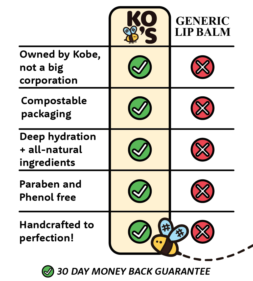 Don't Let Size Fool You: Our Lip Balms may appear shorter than traditional plastic lip balm tubes, but they hold the same amount of nourishing product! The unique chubby shape of our tubes allows for an efficient push-up feature rather than twisting to make it easy to use every last bit! With KOBEE'S, you're getting the full value in a compact, compostable, and user-friendly package. Experience the same amount of product, with a touch of innovation and sustainability!