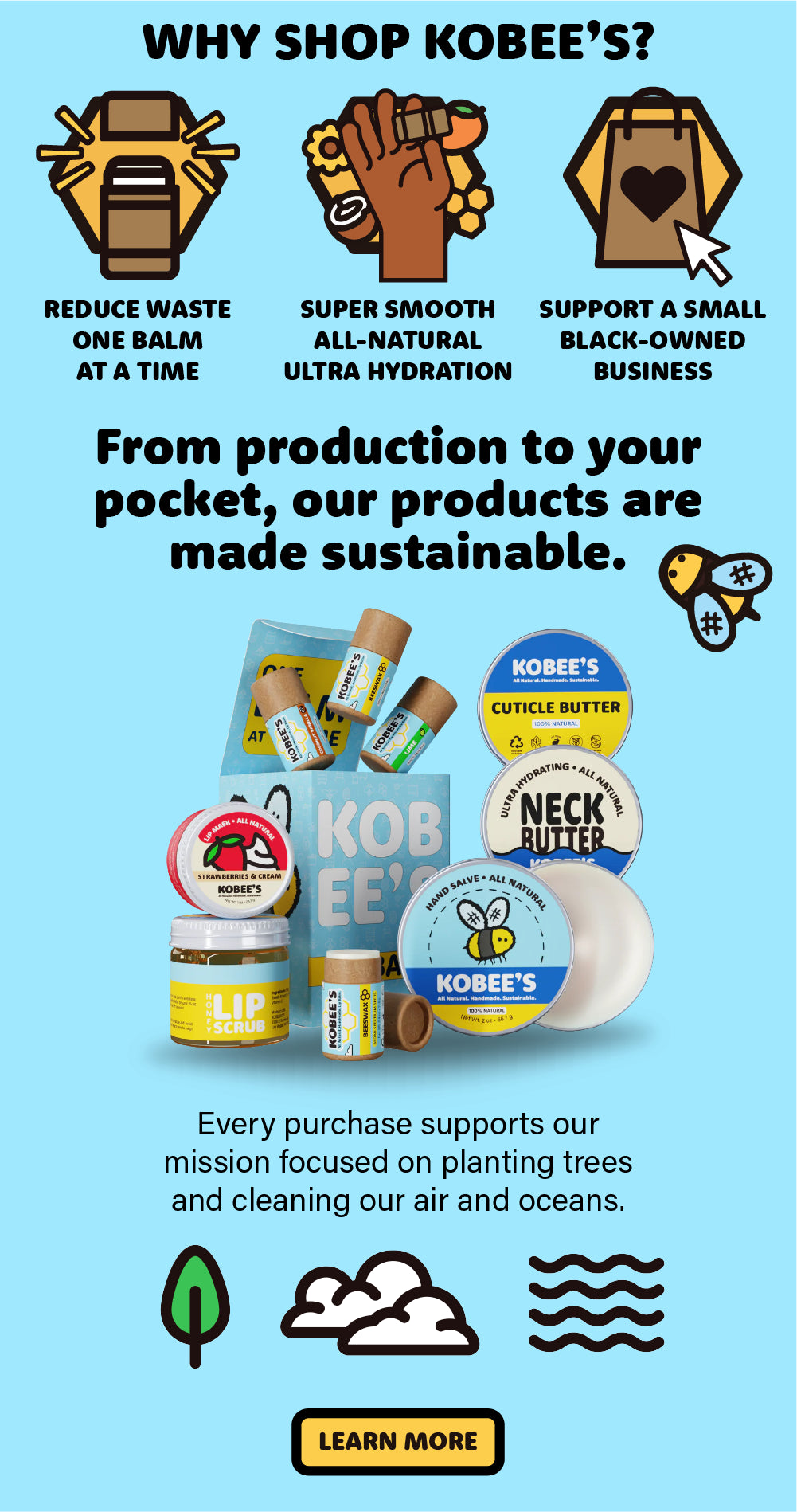 - Environmentally Responsible: The compostable packaging of our Lip Balms aligns with a zero-waste lifestyle and reflects our dedication to environmental stewardship. A portion of proceeds also go towards our mission focused on planting trees and cleaning our air and oceans.